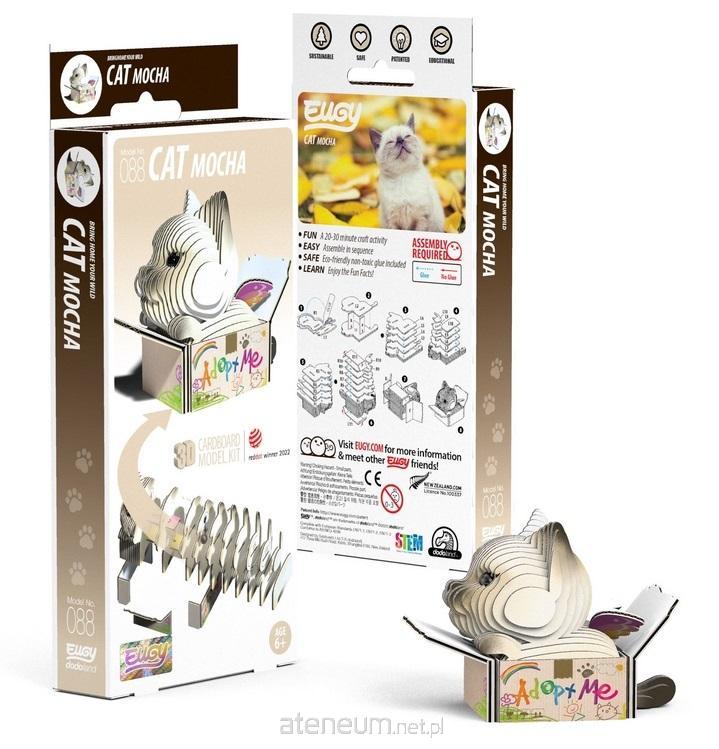 Eugy zaprojektowane w Nowej Zelandii są wykonane z przyjaznego dla środowiska kartonu pochodzącego z recyklingu i farby na bazie ryżu. Zestaw zawiera 25 ponumerowanych elementów układanki, nietoksyczny klej, oczka oraz instrukcję do zbudowania kota w pudełku. Zbierz całą serię zwierząt, ptaków, dinozaurów i wiele innych. Dla dzieci w wieku 6 lat+.
