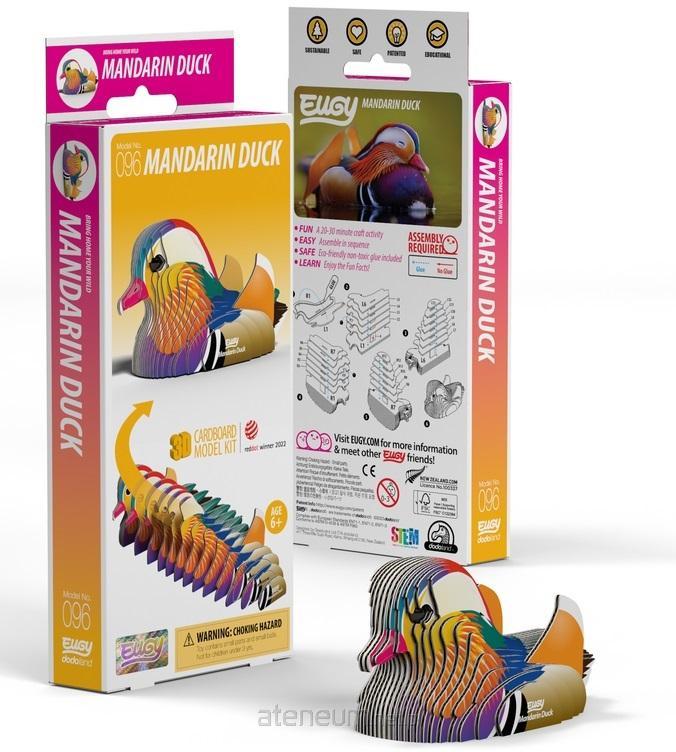 Kaczka Mandarynka Eugy, to kaczor, który ma piękne kolorowe upierzenie z charakterystycznymi długimi piórami po bokach przypominających wachlarz. Złóż swojego kaczora i niech przyniesie Ci szczęście i pomyślność.