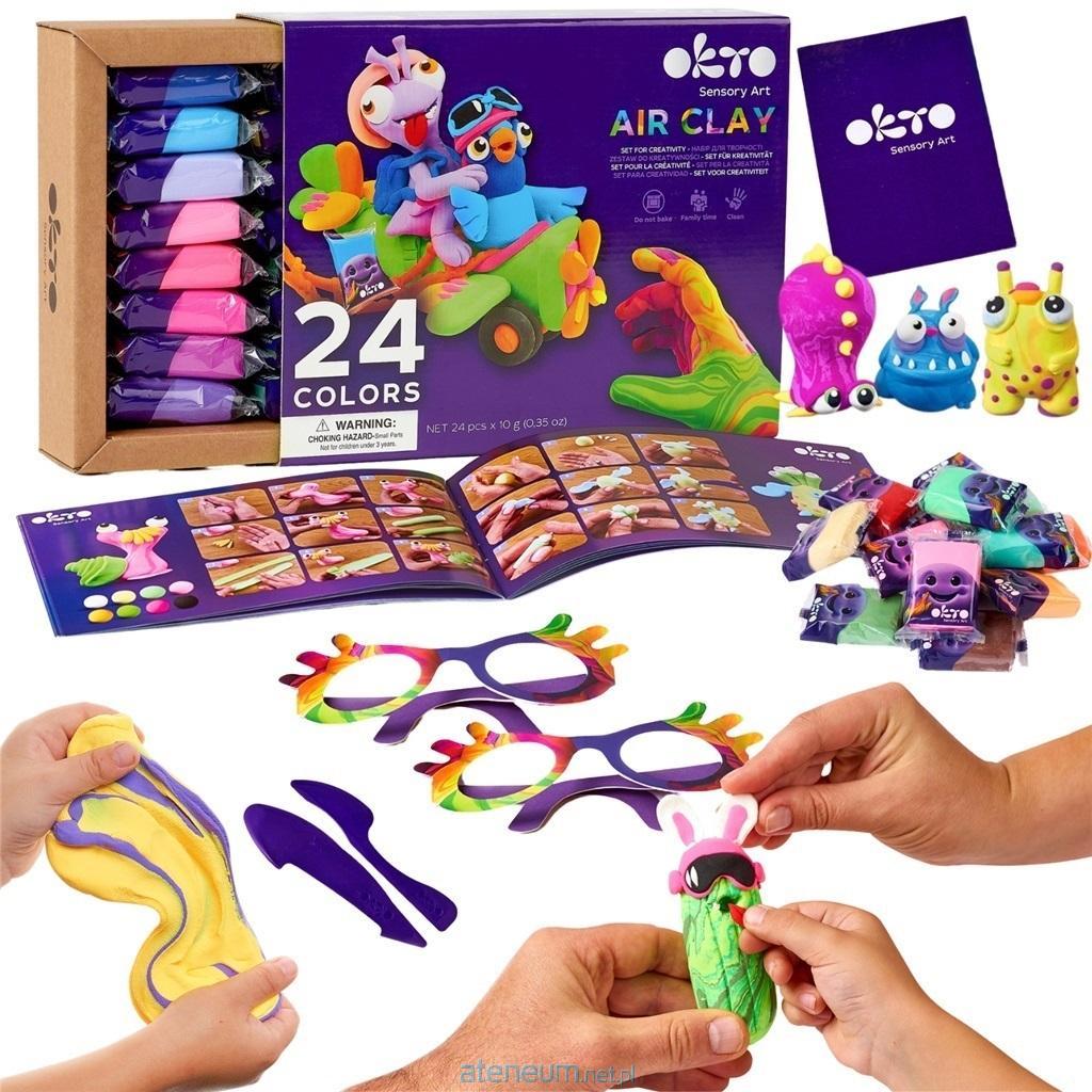 Zestaw zawiera: 24 szt. plasteliny, książeczkę z ilustracjami, 2 szt. narzędzi do obróbki detali, torebki do przechowywania oraz 2 szt. okularów.