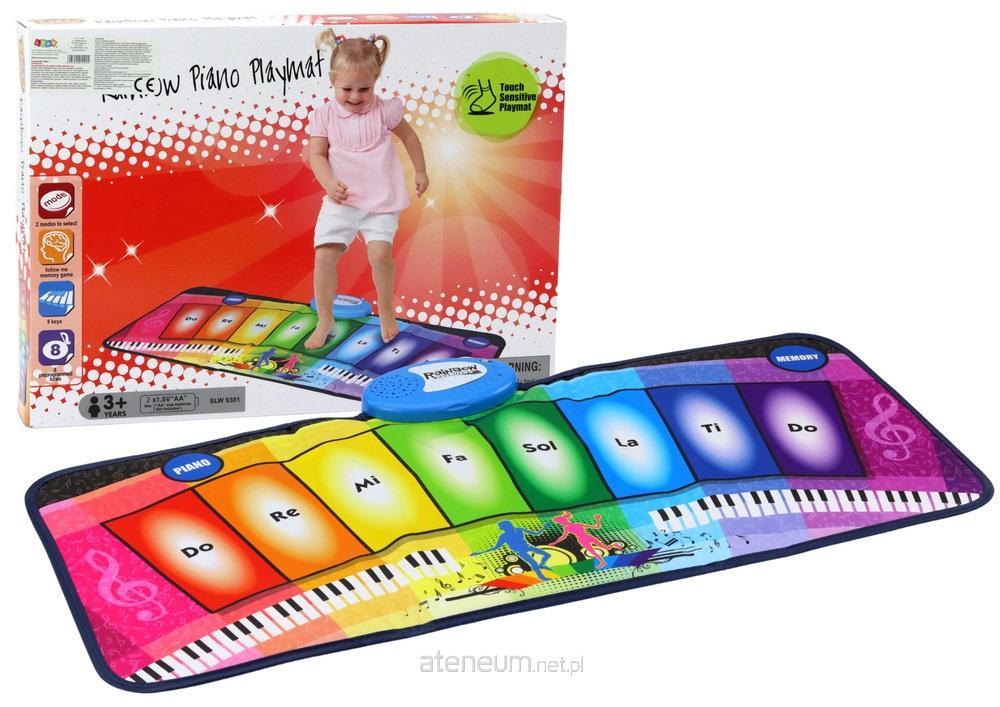 Mata Muzyczna Taneczna Edukacyjna Pianinko Tęczowe Mata Muzyczna Pianinko to niezwykła zabawka, która otwiera dzieciom drzwi do fascynującego świata muzyki poprzez interaktywną zabawę. Wyróżnia ją nie tylko kolorowe pianinko widniejące na macie, ale przede wszystkim bogactwo możliwości, które oferuje. Zaczynając od samego pianinka - jego klawisze stają się wirtualną klawiaturą, którą dziecko obsługuje poprzez naciskanie odpowiednich przycisków na macie. To nie tylko sposobność do odtwarzania gotowych melodii, ale przede wszystkim do twórczej improwizacji i eksperymentowania z dźwiękami. Oferowane 8 różnorodnych melodii w trybie Piano dostarcza dzieciom inspiracji i zachęca do odkrywania różnorodności muzyki. Dzięki temu mogą wyrażać swoje emocje i fantazje poprzez dźwięki, co stymuluje ich kreatywność i wyobraźnię. Najciekawszym aspektem tej zabawki jest jednak tryb gry, który uruchamiany jest poprzez klawisz Memory. Dziecko wciela się tutaj w rolę małego pianisty, który powtarza dźwięki odtwarzane przez matę. To nie tylko zabawa, ale także forma treningu dla pamięci, koncentracji i umiejętności słuchowych. Mata Muzyczna Pianino nie tylko dostarcza rozrywki, ale także rozwija szereg umiejętności poznawczych i motorycznych dziecka. Poprzez interakcję z muzyką stymuluje jego rozwój sensoryczny, poznawczy i emocjonalny. Jest to zatem niezastąpiona zabawka dla małych miłośników muzyki, którzy chcą odkrywać jej tajemnice w sposób zarówno przyjemny, jak i edukacyjny. Mata zasilana jest na baterie 2x 1.5V AA, które nie są elementem zestawu. Wymiary maty: 80 x 35 cm Wymiary opakowania: 39cm x 28cm x 5cm Posiada certyfikat CE, ponadto jest zgodny z normą EN71. Przeznaczony dla dzieci powyżej 3 roku życia.