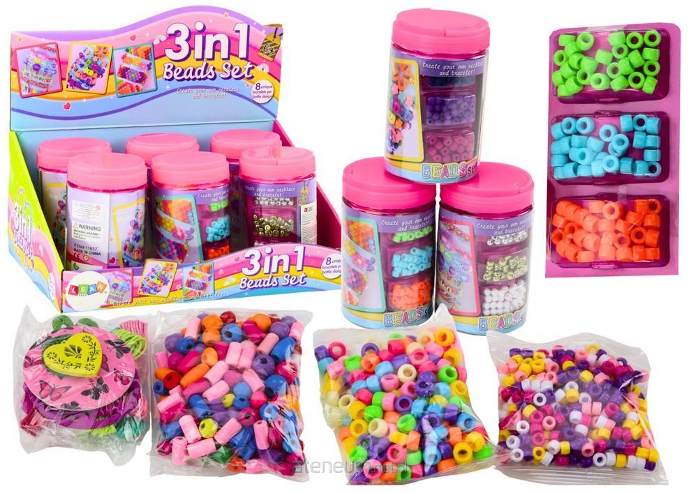 Zestaw Koralików W Słoiku Do Tworzenia Biżuterii 3w1 Zestaw koralików w słoiku to prawdziwa kopalnia inspiracji dla małych artystów. W słoiku znajduje się bogactwo kolorowych koralików - aż 5 zestawów o różnych kształtach i fakturach, co pozwala na tworzenie różnorodnych wzorów i kompozycji. Dodatkowo, zestaw zawiera różnorodne zawieszki oraz mulinę w 4 różnych kolorach, co daje dzieciom pełną swobodę wyrażania swojej kreatywności. Każdy element zestawu został starannie dobrany, aby zapewnić dzieciom możliwość tworzenia spersonalizowanej biżuterii, która odzwierciedla ich własny styl i osobowość. Dzięki temu dzieci uczą się nie tylko wyrażać siebie poprzez sztukę, ale również rozwijają swoje umiejętności manualne, koncentrację oraz cierpliwość. Tworzenie biżuterii to nie tylko zabawa, ale również proces kreatywny, który rozwija wyobraźnię i umiejętność rozwiązywania problemów. Dzieci mogą eksperymentować z różnymi wzorami i technikami, co pozwala im odkryć własne talenty i pasje. Zestaw koralików w słoiku to nie tylko świetna rozrywka, ale także wartościowa forma nauki i rozwoju dla dzieci. W opakowaniu zbiorczym znajduje się 6 sztuk. Zabawki sprzedawane osobno. Wymiary słoika: 12cm x 7,5cm x 7,5cm Wymiary opakowania zbiorczego: 29,5cm x 21cm x 13cm Posiada certyfikat CE, ponadto jest zgodny z normą EN71. Przeznaczony dla dzieci powyżej 6 roku życia.