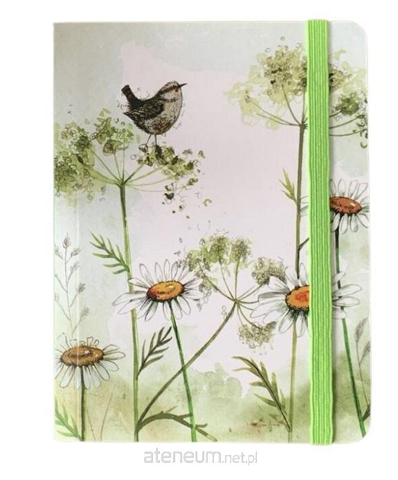 Ozdobny notatnik w formacie A6 z kartonową okładką i elastyczną gumką do zamykania. W środku znajduje się 160 stron w linie.