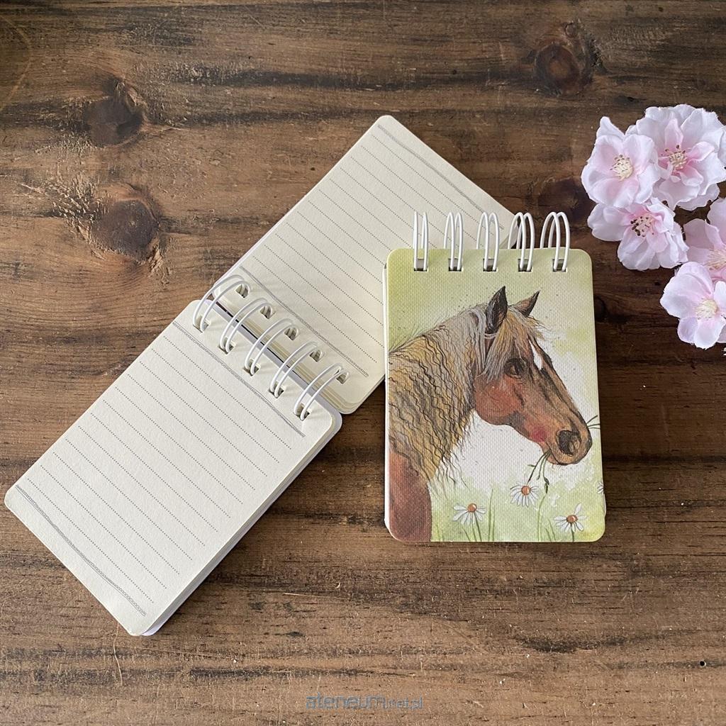 Ozdobny kołonotatnik w formacie A7 z twardą okładką, otwierany do góry. W środku znajduje się 112 stron w linie. Z tyłu zawiera małą, plastikową kieszeń, w której można przechowywać dodatkowe notatki, paragony itp.