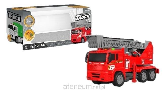 Straż pożarna zdalnie sterowana z pilotem RC. Samochód leje wodą, ma wysuwaną drabinę, a po na naciśnięciu przycisków wydaje dźwięki