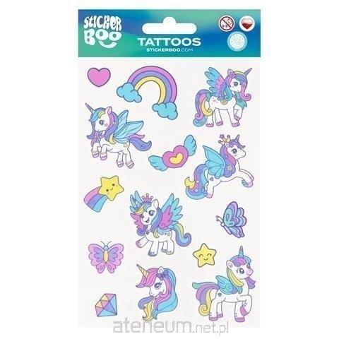 Tatuaże Unicorn STICKER BOO z pewnością przypadną do gustu dzieciakom, idealne do zdobienia ciała, dadzą dużo frajdy oraz satysfakcji i wiele możliwości. Łatwe w użyciu! Aby usunąć tatuaż wystarczy tylko użyć oliwki lub mydła.