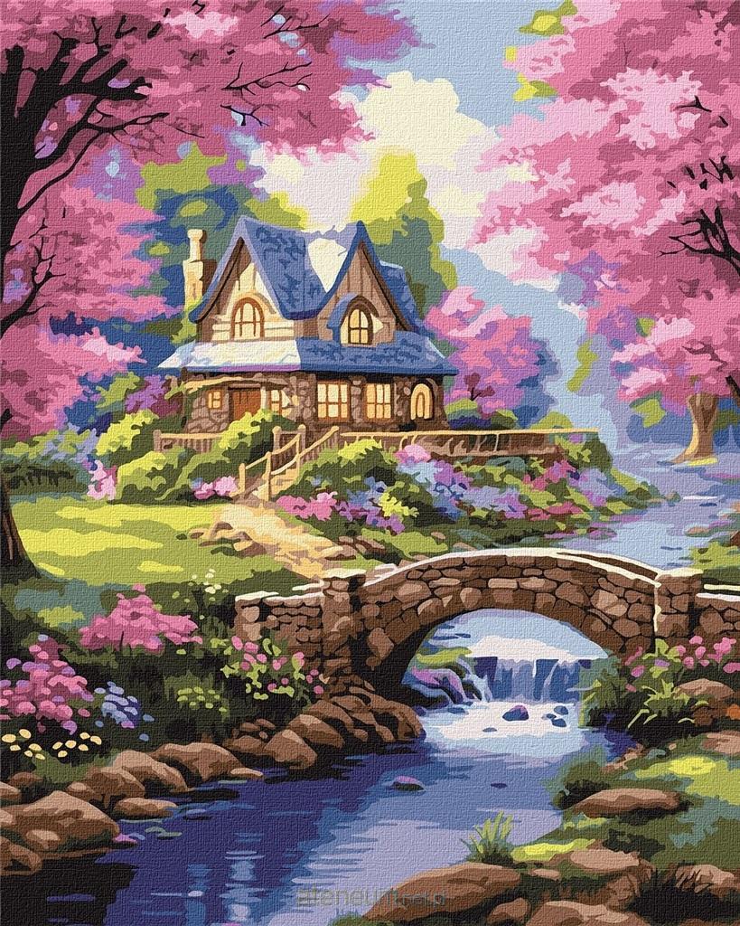 Malowanie po numerach - Dom w kwiatach 40x50cm