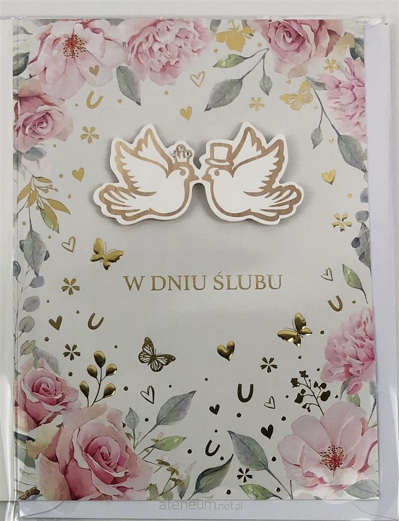"Kartka okolicznościowa Ślubna LUX z życzeniami. USZLACHETNIENIA: w zależności od projektu graficznego pojawia się: folia (złota, srebrna, multikolor-holografik), elementy 3D, cekiny lub cyrkonie. Zrobione metodą hotstampinku. (metalik) Do każdej kartki dołączona jest koperta 100 gsm w pasującym do projektu kolorze. Całość zabezpieczona jest folią."