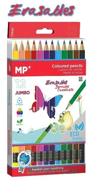 Kredki ołówkowe ścieralne z gumką Jumbo 12 kolorów