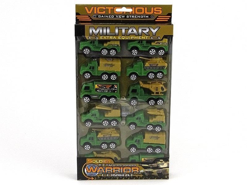 zestaw 12 aut wojskowych, naciąg sprężynowy; 33x19x4cm W/B