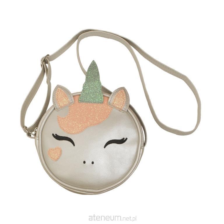 Torebka w kolorze jasno srebrnym, z aplikacją jednorożca. Główna komora zamykana na zamek. Pasek z możliwością realizacji.