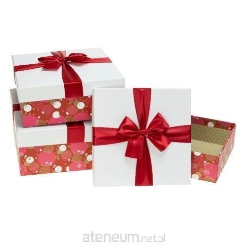 Zestaw pudełek prezentowych kwadratowych 3szt, motyw biało-czerwony z kółeczkami