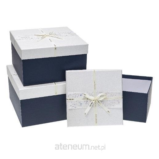 Zestaw pudełek prezentowych kwadratowych 3szt, srebrno-granatowy