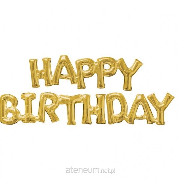 Balon foliowy Happy Birthday złoty