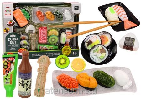 Zestaw dla dzieci, który przeniesie maluchy w magiczny świat przygotowywania i serwowania pysznego sushi. Zestaw zawiera różnorodne składniki niezbędne do przygotowania pysznego sushi. Wśród nich znajdują się krewetki, łosoś, wasabi, ryż, algi nori oraz pałeczki do sushi. Dzięki nim dzieci mogą udawać, że są prawdziwymi mistrzami sushi, komponując i serwując swoje własne wariacje ulubionych dań. Oprócz składników do sushi, zestaw zawiera także owoce morza, takie jak małże czy ośmiorniczki. To doskonałe uzupełnienie dla każdego szefa kuchni, który pragnie stworzyć w pełni autentyczne i smaczne sushi. Ten zestaw zachęca dzieci do rozwijania wyobraźni i kreatywności poprzez udawanie prawdziwych sushi chefów. Mogą one aranżować składniki na talerzu, zwijać rolki sushi, kroić je w kawałki i serwować swoim "gościom" w wyimaginowanej restauracji sushi. Bogaty wybór składników, autentyczne akcesoria oraz możliwość kreowania własnych dań sprawiają, że każde dziecko może poczuć się jak prawdziwy mistrz kuchni. To idealny prezent dla małych kulinarnych entuzjastów, który zapewni godziny beztroskiej zabawy i niezapomniane chwile pełne smaku i przyjemności. Zawartość zestawu: - ryż - komplet pałeczek - wasabi - surmii - łosoś - ośmiorniczka - algi nori - miseczki - kiwi i pomarańcza - oryginalne opakowanie Wymiary opakowania: 35 cm x 25 cm x 6 cm Posiada certyfikat CE, ponadto jest zgodny z normą EN71. Przeznaczony dla dzieci powyżej 3 roku życia.
