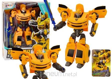 Auto-Robot 2w1 Transformacja Sportowy Żółty Auto Robot 2w1 to niezwykły model, który łączy w sobie elegancję sportowego samochodu wyścigowego i imponującą postać dużego robota. W kolorze żółtym, zachwyca szczegółowym odwzorowaniem detali, co sprawia, że wygląda niezwykle realistycznie zarówno jako pojazd, jak i robot. Model wiernie odwzorowuje elementy prawdziwego auta wyścigowego, takie jak aerodynamiczne linie, sportowy design i charakterystyczne detale karoserii. Dzięki precyzyjnemu wykonaniu, prezentuje się on jak autentyczny, dynamiczny pojazd, który z łatwością przyciąga wzrok. Jednak to, co czyni ten model naprawdę wyjątkowym, to jego zdolność do transformacji. Transformacja z robota w samochód odbywa się płynnie i jest niezwykle prosta do wykonania, co dodaje zabawie dodatkowego elementu interaktywności. Po transformacji, Auto Robot 2w1 staje się samochodem, który imponuje swoją solidną budową i zaawansowaną konstrukcją. Ruchome części robota pozwalają na ustawianie go w różnych pozycjach, co zwiększa możliwości zabawy i sprawia, że staje się jeszcze bardziej atrakcyjny dla użytkowników. Sterowanie modelem jest intuicyjne i łatwe, co umożliwia nawet młodszym użytkownikom szybkie opanowanie jego funkcji. Auto Robot 2w1 został wykonany z wysokiej jakości materiałów, co zapewnia jego trwałość i odporność na uszkodzenia, dzięki czemu zabawa nim może trwać naprawdę długo. To unikatowe połączenie sportowego pojazdu i robota jest idealnym wyborem dla dzieci, które są fanami nowoczesnych zabawek. Auto Robot 2w1 dostarcza wielu godzin emocjonującej zabawy, rozwijając kreatywność i umiejętności manualne. Jest to doskonały prezent, który z pewnością przyniesie mnóstwo radości każdemu wielbicielowi samochodów i robotów. Wymiary robota: 23,5cm x 20cm x 8cm Wymiary auta: 21,5cm x 8,5cm x 7cm Wymiary opakowania: 31,5cm x 25,5cm x 9cm Posiada certyfikat CE, ponadto jest zgodny z normą EN71. Przeznaczony dla dzieci powyżej 3 roku życia.