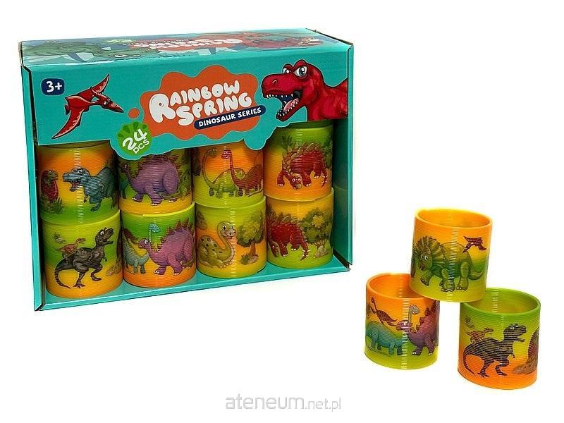 Zestaw 24 sprężyn tęczowych, śred.6,5cm, wzór dinozaury; W/B