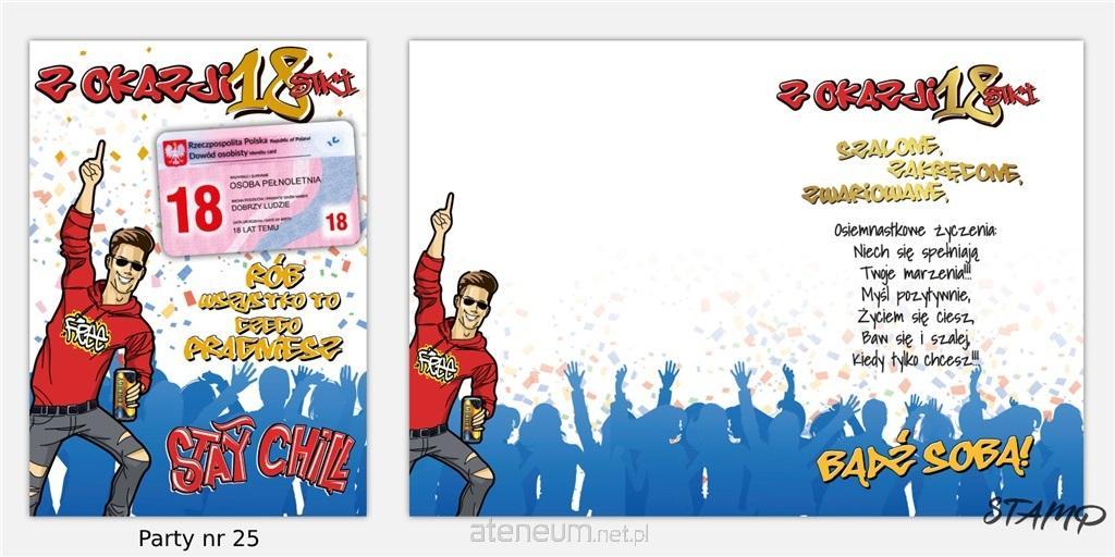 Karnet Party naklejany B6+koperta Urodziny 18 wz19