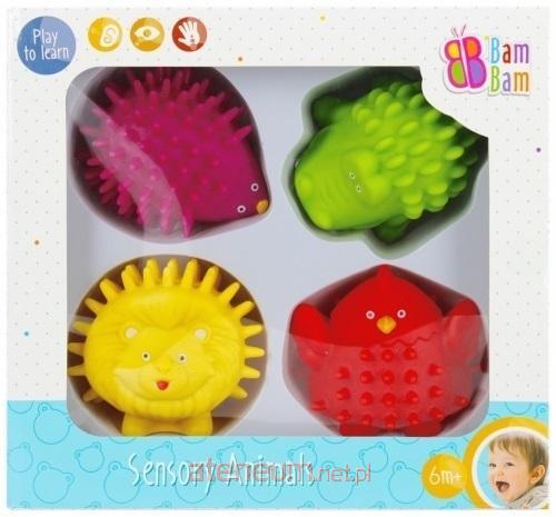 ZESTAW ZABAWEK SENSORYCZNYCH to absolutnie więcej aniżeli tylko zabawka edukacyjna. Odmienne kształty figurek w postaci lwa, jeżyka, hipopotama oraz kurczaka zapewnią dziecku różnorodność oraz wielorakie doznania sensoryczne wspierające rozwoj zmysłu dotyku oraz zdolnosci manualnych. Zróżnicowane kształte, a także licznie i wielorako uformowane wypustki pobudzaja receptory czuciowe, a przy tym odpreżaja, relaksują i ćwiczą małe dłonie . Urozmaicona faktura i kolorystyka dostarczają bodźców dla zmysłu wzroku. Zabawki sensoryczne gwarantują wszechstronny rozwój dziecka, które poprzez zabawę doskonali koordynację pomiędzy świadomym chwytaniem, a widzeniem, a także usprawnia zdolności manualne. Wymiary/waga/baterie: wymiary produktu (dł. x wys. x gł.)[cm]: 8x7x7, wymiary opakowania (dł. x wys. x gł.)[cm]: 23x21x8, waga produktu bez opakowania [kg]: 0,16 kg, waga produktu w opakowaniu [kg]: 0,27 kg, nie wymaga zasilania bateriami. Zabawka przeznaczona dla dzieci w wieku: 6m+. Pakowana w kartonik z okienkiem.