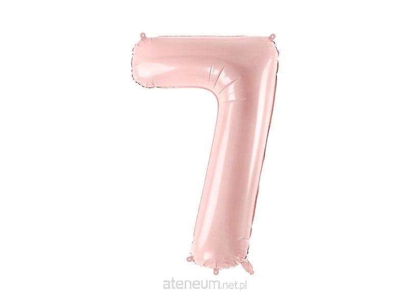 Balon foliowy pastelowy Cyfra ''7'' w kolorze jasnoróżowym , rozmiar przed napompowaniem ok. 86 cm (34''), rozmiar po napompowaniu ok. 72 cm (28''). Do napompowania powietrzem i helem. Zestaw zawiera słomkę