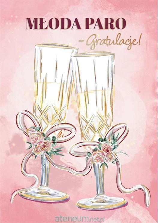 Karnet z kieszonką na pieniądze w formacie B6, składany z trzech. Złocony i tłoczony, teksy życzeń w środku. Wydrukowany na wysokiej jakości papierze. W zestawie koperta.