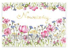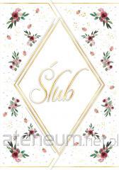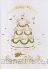 Karnet w formacie 15 x 15 cm. Wydrukowany na wysokiej jakości papierze. Karnet z tłoczonymi wzorami na całej powierzchni oraz złoceniem. W zestawie kolorowa koperta.