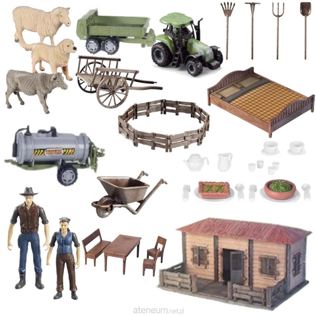 Zestaw zawiera wiele elementów, które umożliwiają dziecku stworzenie swojego własnego wiejskiego świata. Dzięki różnorodnym akcesoriom, takim jak domek, narzędzia rolnicze, stół, krzesła, ławka, łóżko i wiele innych, maluch może tworzyć swoje opowieści i symulować życie na farmie.