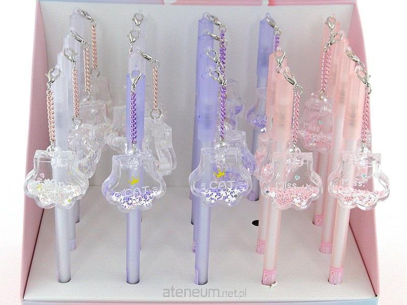 długopis z zawieszką - łapka kocia z płynnym brokatem, display 20szt; 21x18x13,5cm, Box