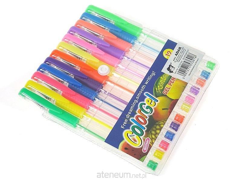 zestaw 12 długopisów żelowych, kolorowe; 15x13,5x1cm, PVC
