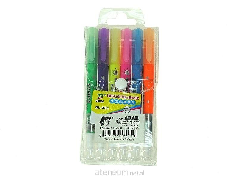 zestaw 6 wymazywalnych markerów, z gumką, kolorowe