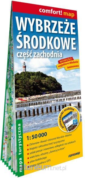 Dwustronnie laminowana mapa wybrzeże Morza Bałtyckiego od Wolińskiego Parku Narodowego aż po Koszalin. Obejmuje m. in. Dziwnów, Kamień Pomorski, Pobierowo, Rewal, Niechorze, Trzebiatów, Mrzeżyno, Dźwirzyno, Kołobrzeg, Ustronie Morskie, Mielno, Karlino. Mapa została opracowana we współpracy z doświadczonymi krajoznawcami z regionu. Mapa posiada bogatą treść turystyczną, m. in.: szlaki piesze i rowerowe, kajakowe, ścieżki dydaktyczne i spacerowe, ścieżki rowerowe, linie żeglugi pasażerskiej, przystanie, bogata treść turystyczna: atrakcje turystyczne, zabytki, noclegi, obszary "Zanocuj w lesie", parki narodowe, rezerwaty przyrody, atrakcje przyrodnicze, starodrzewy, ukształtowanie terenu pokazane za pomocą poziomic i cieniowania, dodatkowo plan Kołobrzegu w szczegółowej skali 1:15 000 (1 cm - 150 m). Cechy mapy: dogodna zarówno dla pieszego, jak i rowerzysty skala 1:50 000 (1 cm - 500 m), zgodna z GPS - współrzędne geograficzne w układzie WGS-84, wygodna w składaniu, dwustronnie laminowana, trwała i wodoodporna. Powyższy opis pochodzi od wydawcy.