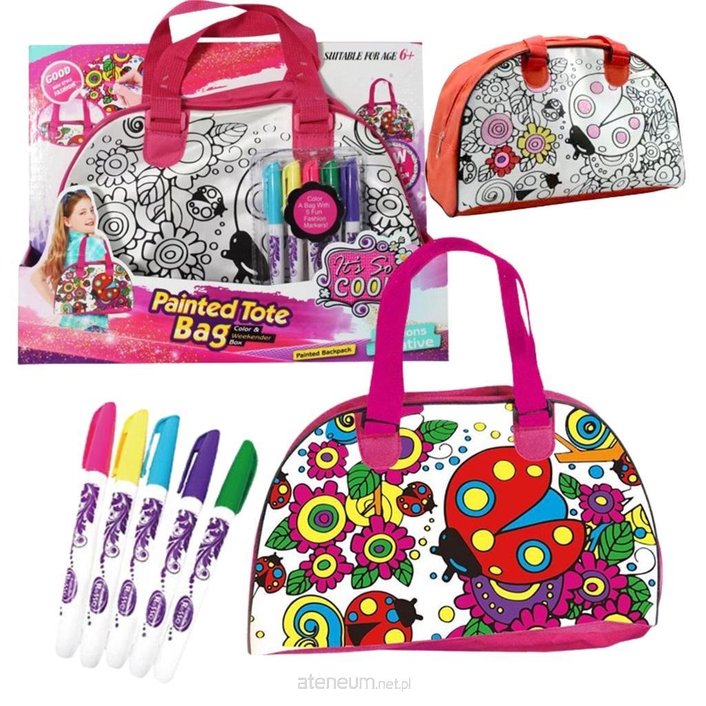 Zestaw zawiera torebkę, markery i wiele pomysłów na projektowanie. Aby dowiedzieć się jak kolory będą wyglądać na torebce, najlepiej wypróbować je najpierw na innym materiale.