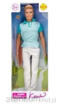 Ubrana w białe spodnie i koszulkę polo w paski, czarne półbuty.