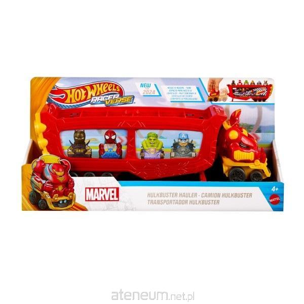 Załaduj Transporter Hulkbuster Hot Wheels RacerVerse Marvel wyścigówkami Hot Wheels® i ruszaj w trasę! Ten transporter z motywem Iron Mana jest ozdobiony grafikami Stark Racing i ma miejsce na 10 samochodzików Hot Wheels RacerVerse lub pojazdów Hot Wheels® w skali 1:64. Odczep kabinę i podnieś hełm, aby odkryć niewyjmowaną figurkę Tonyego Starka na fotelu kierowcy, która wzbogaca wymyślane opowieści. Kolory i elementy dekoracyjne mogą się różnić. Dodatkowe pojazdy Hot Wheels RacerVerse są sprzedawane oddzielnie.