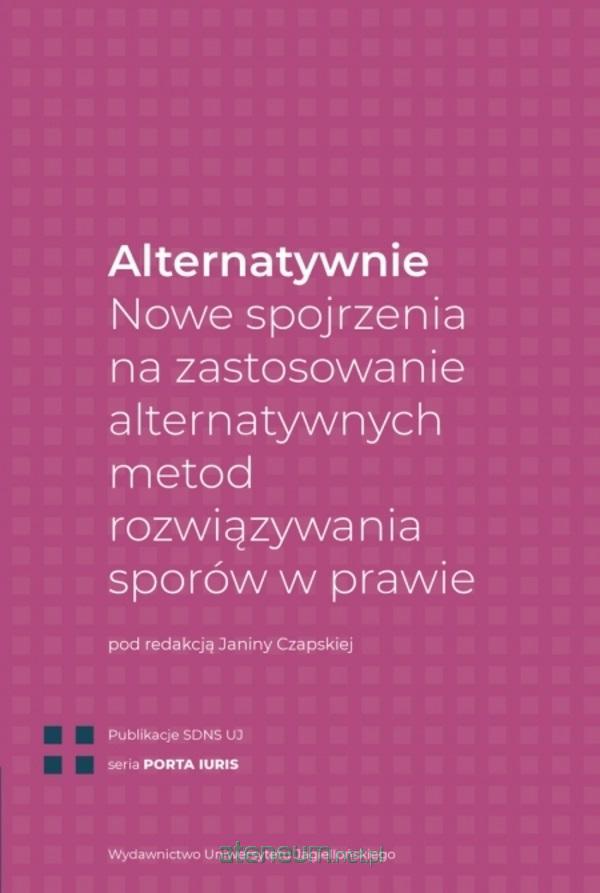 "Praca pod redakcją dr hab. Janiny Czapskiej, prof. UJ, zatytułowana Alternatywnie. Nowe spojrzenia na zastosowanie alternatywnych metod rozwiązywania sporów w prawie, stanowi oryginalną i wartościową treściowo oraz konstrukcyjnie monografię naukową, popartą rzetelną i szczegółową analizą indywidualną i grupową szerokiego spektrum właściwie dobranych i skomponowanych, relewantnych zagadnień badawczych".