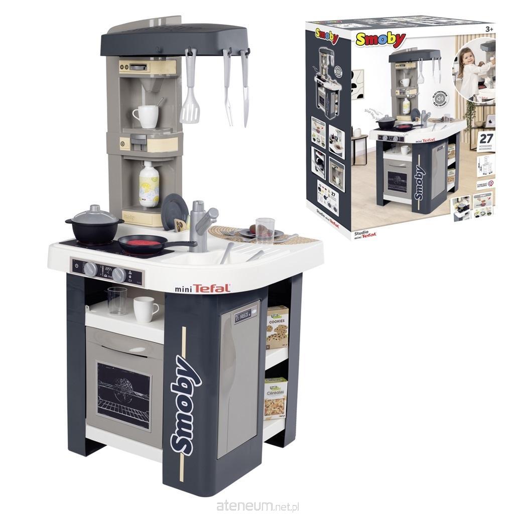 Elektroniczna kuchnia z odgłosem gotowania. Zestaw ma wiele miejsca do zabawy - blat, zlewozmywak, ekspres do kawy z kapsułkami, saturator, lodówkę, piekarnik oraz półeczki. W zestawie 27 akcesoriów, w tym rybka i kotlet usmażone z jednej strony, sztućce, talerzyki, kubeczki itp. Blat na wysokości: 50,5 cm. Wyprodukowana we Francji. Wymiary: 48 x 46,5 x 99 cm, 3l+
