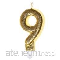 Świeczka urodzinowa, złoty brokat "9" SH-687