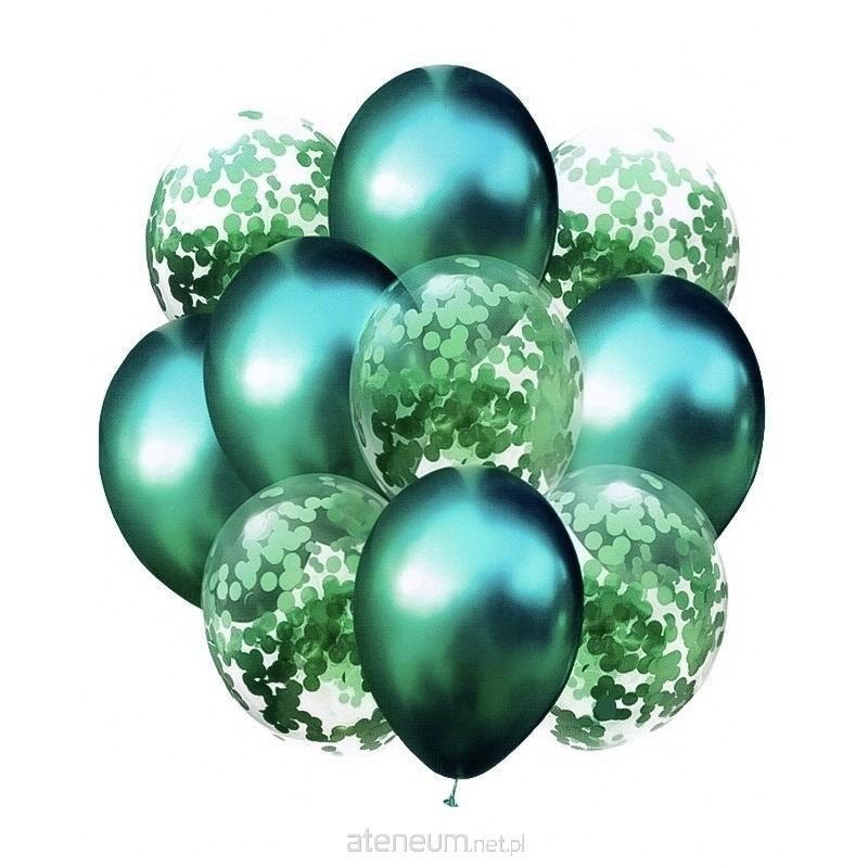 Balony zieleń metalik i konfetti 10szt