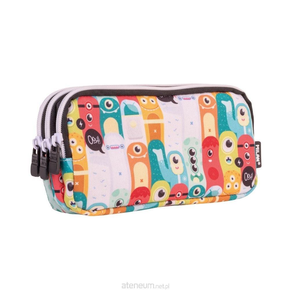 Piórnik saszetka MILAN z 3 szerokimi przegródkami ułatwiającymi organizację zawartości. Seria specjalna Aliens, z wesołym wielokolorowym wzorem kosmitów, te same postacie co w drewnianej zabawce "Wieża kosmitów". Czarna wewnętrzna podszewka. Materiał zewnętrzny i wewnętrzny 100% poliester. Wymiary: 22 x 11 x 6,5 cm.