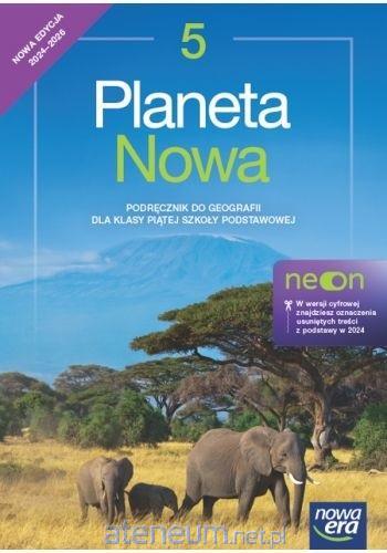 Podręcznik Planeta Nowa jest przeznaczony do nauczania geografii w klasie piątej szkoły podstawowej. W przejrzysty sposób prezentuje treści dotyczące mapy, a także kontynentów i oceanów na Ziemi, krajobrazów Polski oraz krajobrazów świata. Podręcznik zawiera rozwiązania znane uczniom z podręcznika Tajemnice przyrody dla klasy czwartej, przez co umożliwia łagodne przejście po kursie przyrody w fascynujący świat geografii.