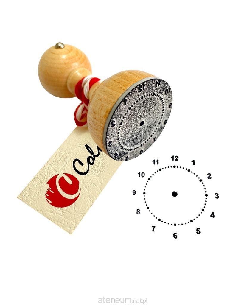 Stempel (pieczątka) w kształcie tarczy zegara do nauki czasu bez zaznaczonych na tarczy minut.