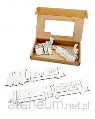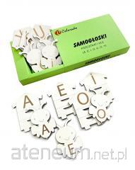 Zawiera 45 elementów (15 tabliczek z wyciętymi kształtami, 15 kształtów, 15 nazw kształtów).