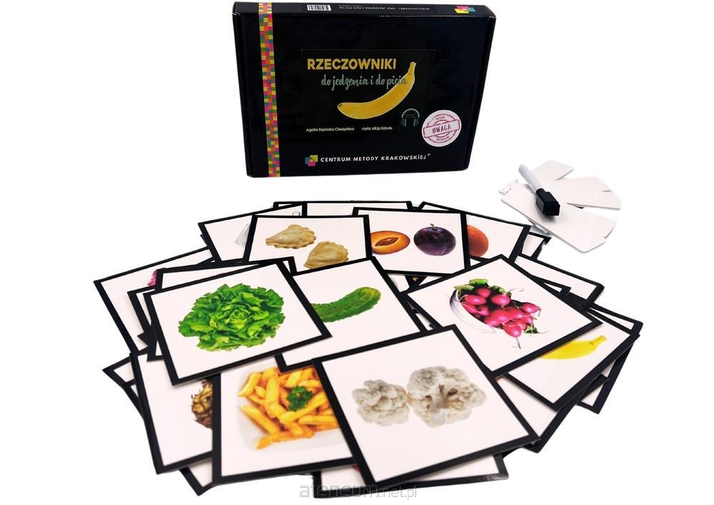 W wydaniu rozszerzonym znajdziecie więcej zdjęć oraz 5 tabliczek wykonanych z pleksi, na których można zapisywać nazwy produktów za pomocą dołączonego do zestawu pisaka suchościeralnego. W przeciwieństwie do często symbolicznych obrazków w innych pomocach, my wykorzystaliśmy fotografie prawdziwych produktów spożywczych.