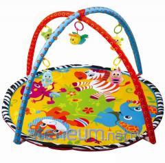 Mata Gimnastyczna Dla Niemowląt Pianinko Edukacyjne Dźwięki Kolorowa i wielofunkcyjna mata gimnastyczno-edukacyjną dla maluszków, która zapewnia radosną i rozwijającą zabawę. Ta mata to idealne rozwiązanie dla rodziców, którzy chcą wspierać rozwój motoryczny i sensoryczny swojego dziecka. Mata została zaprojektowana z myślą o różnorodnych aktywnościach fizycznych, które wspierają rozwój motoryczny dziecka. Dziecko może kopać nóżkami w pianinko leżąc na pleckach, które jest zamontowane do podstawy maty, wytwarzając przy tym wesołe dźwięki. Dziecko może grać na pianinku rączkami leżąc na brzuszku, rozwijając koordynację ręka-oko i wzmacniając mięśnie. Maluszek może bawić się, siedząc na macie, grając na pianinku lub manipulując zabawkami zawieszonymi na łuku. Kolorowa i miękka mata, która zapewnia wygodę i bezpieczeństwo podczas zabawy. Umieszczone na podstawie maty pianinko, które reaguje na dotyk dziecka, wydając wesołe dźwięki i melodie, stymulując zmysł słuchu i zachęcając do aktywności fizycznej. Znajdujący się nad matą łuk, do którego doczepione są małe misie w różnych kolorach oraz lustereczko, kolorowe, zawieszone zabawki, które maluszek może obserwować, chwytać i potrząsać, co rozwija zmysł wzroku i dotyku. Bezpieczne lustereczko, które pozwala dziecku na samopoznanie i zabawę w odkrywanie własnego odbicia. Mata wspiera rozwój zmysłów (wzroku, słuchu, dotyku) oraz koordynację ruchową dziecka. Zabawka umożliwia różnorodne formy zabawy, dostosowane do różnych etapów rozwoju dziecka. Mata i zawieszki są kolorowe i atrakcyjne wizualnie, co przyciąga uwagę maluszka i zachęca do zabawy. Mata gimnastyczno-edukacyjna to idealna zabawka do codziennej zabawy w domu. Dzięki niej dziecko będzie mogło aktywnie spędzać czas, rozwijając swoje umiejętności fizyczne i sensoryczne w przyjemny i bezpieczny sposób. Jest to także doskonały pomysł na prezent dla każdego maluszka. Zapewnij swojemu dziecku radosną i rozwijającą zabawę z naszą matą gimnastyczno-edukacyjną. Wymiary maty: 75 cm x 58 cm x 40 cm Wymiary opakowania: 38 cm x 30 cm x 8 cm Pianinko zasilane jest dwoma bateriami 1.5V AA, które nie są elementem zestawu. Posiada certyfikat CE, ponadto jest zgodny z normą EN71. Przeznaczony dla dzieci od pierwszego miesiąca życia.