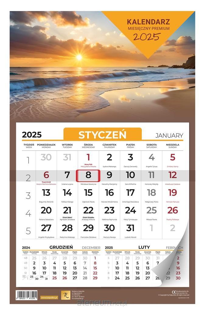 Kalendarz 2026 trójdzielny płaska główka Zamek