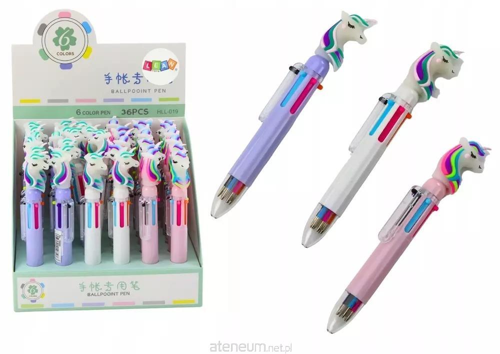 Wielokolorowy Długopis Jednorożec Automatyczny 6 Kolorów Mix Ten funkcjonalny długopis łączy w sobie zabawę i praktyczność, oferując aż 6 kolorów w jednym narzędziu do pisania. Długopis ozdobiony jest uroczo wyglądającym motywem jednorożca, który z pewnością przyciągnie uwagę dzieci i uczyni codzienne pisanie bardziej ekscytującym. Wyposażony jest w kilka kolorów atramentu, co pozwala na łatwe zmienianie kolorów bez potrzeby zmiany pisaka. Każdy kolor jest idealny do różnorodnych zastosowań, od rysowania po pisanie. Aby zmienić kolor, wystarczy nacisnąć na następny, wybrany kolor, co sprawia, że zmiana koloru jest szybka i zabawna. To intuicyjne rozwiązanie ułatwia dzieciom wybór odpowiedniego koloru do każdej pracy. Ten długopis to doskonały sposób na wzbudzenie zainteresowania pisaniem i rysowaniem. Dzięki połączeniu kolorowego atramentu i interaktywnego motywu jednorożca, długopis staje się atrakcyjnym i praktycznym narzędziem do nauki i zabawy. Cena dotyczy jednego długopisu, w opakowaniu zbiorczym znajduje się 36 sztuk. Kolor wybierany losowo. Posiada certyfikat CE. Przeznaczony dla dzieci powyżej 3 roku życia.