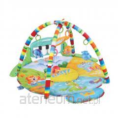 Mata wodna oferuje także aktywności manualne, takie jak obracające się oko krokodyla oraz liście z efektem niespodzianki, którymi dziecko może poruszać.