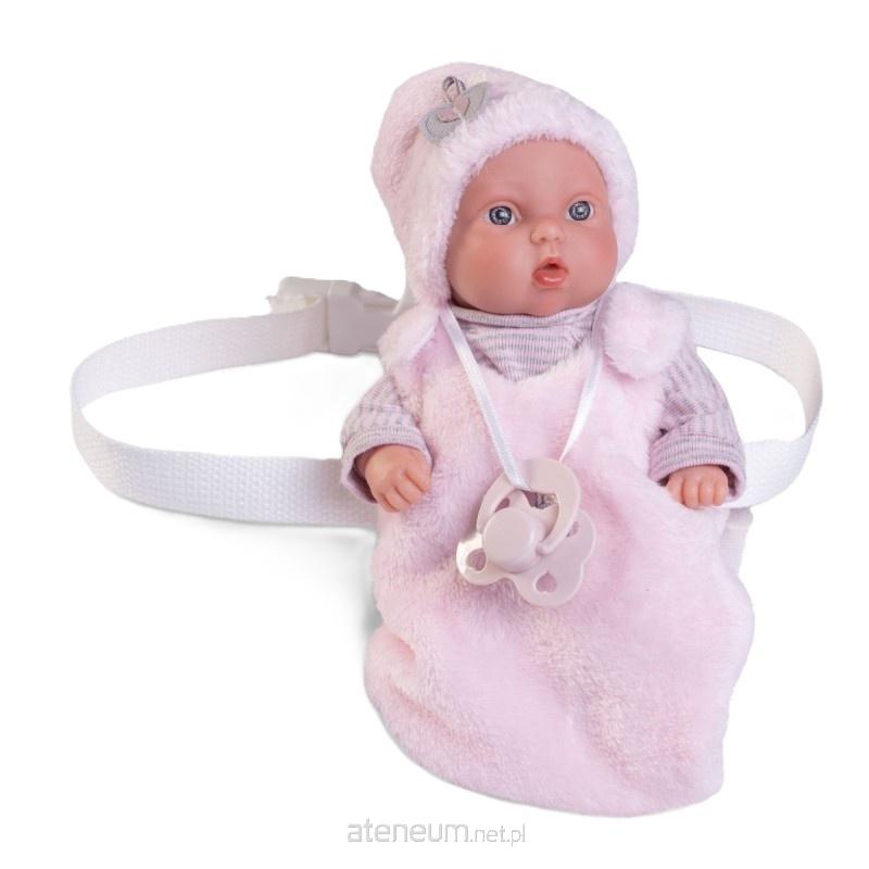 Lalka hiszpańska Antonio Juan 85316 ma ruchome rączki, nóżki i głowę, dzięki czemu można ułożyć ją w różnych pozycjach. Atrakcyjności zabawie dodaje skrupulatnie dobrany, ręcznie szyty, zdejmowany outfit: bawełniany pasiasty rampers z długim rękawkiem oraz ciepła czapeczka z aplikacją w kształcie jabłuszka. Dzięki pluszowemu, różowemu plecaczkowi zapinanego na rzepy, bobasa można zabrać wszędzie ze sobą. Regulowany pasek umożliwia dopasowanie torebki do sylwetki dziecka. Z kolei smoczek na tasiemce pozwala maluchowi wcielić się w rolę troskliwego opiekuna.