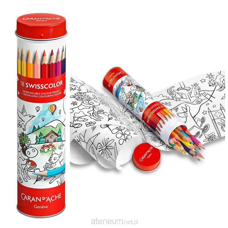 Kredki szwajcarskiej marki Caran dAche z kolekcji Swisscolor -18 kolorów w metalowej tubie z kolorowanką.