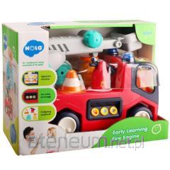Wóz strażacki na licencji marki Volvo, z funkcją światła i dźwięku, otwieraną tylną klapą z miejscem do przechowywania, wysuwaną i obracaną drabiną, na szczycie której można zamontować armatkę wodną. W zestawie dwie buteleczki na wodę. Długość 57 cm, 3l+