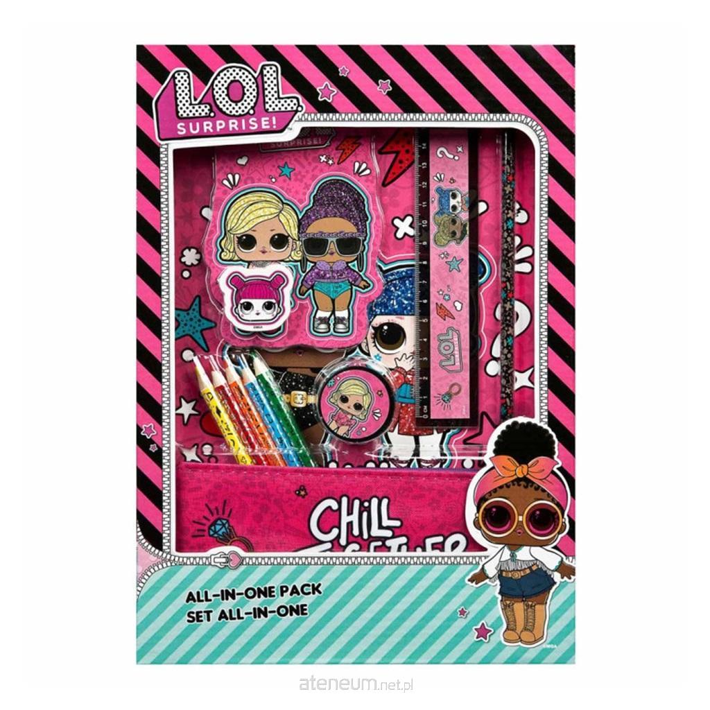 Zestaw Przyborów Szkolnych, 12el.,LOL Surprise Zestaw przyborów szkolnych, stanowiących podstawowe wyposażenie każdego malucha. Starannie wykonany, złożony z saszetki - piórnika, 1 ołówka, notesu, temperówki, gumki, linijki 5 kolorowych kredek oraz zeszytu A4 w linie. Ozdobiony efektownym wizerunkiem LOL Surprise. One też mogą towarzyszyć dzieciom w codziennych szkolnych zmaganiach. Dzięki nim szkoła może być fajna. Nieważne czy jesteś pierwszoklasistą czy piątoklasistą - potrzebujesz przyborów do szkolnej przygody. Wyróżniają się wysoką jakością i funkcjonalnością. Zestaw zawiera: 1 ołówek. 5 kolorowych kredek - żółtą, czerwoną, pomarańczową, niebieską i zieloną. Gumkę do ścierania. Temperówkę. Notes - o wymiarach: 9 cm x 13 cm x 0,5 cm z czystymi kartkami /20 - kartek/. Duży zeszyt A4 w miękkiej oprawie /16 kartek/ w linie. Kartki ozdobione wizerunkami dziewczynek LOL. 1 linijkę. Saszetkę - miękki piórnik o wymiarach: 19 cm x 8 cm x 05 cm zamykany na suwak. Wszystko zapakowane w efektowne pudełko. Wymiary opakowania: 31,5 cm x 22,5 cm x 5 cm. Kategoria wiekowa: 3+.